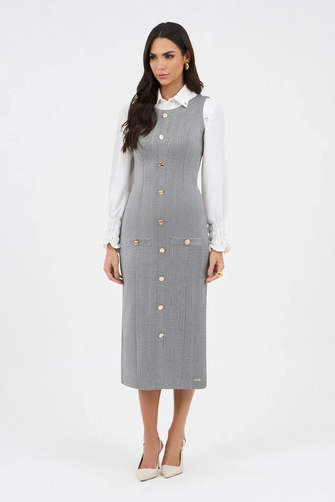 Vestido Chevron Com Mangas Longas