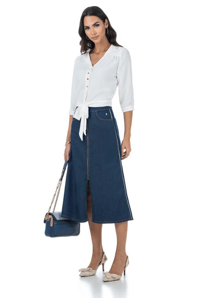 Blusa Crepe 3 4 Com Botoes Frontal Via Tolentino