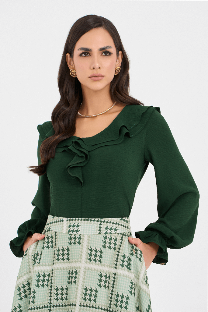 Blusa Rose Decote V Com Babado E Mangas Longa