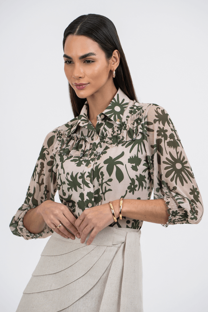 Camisa Estampada Mangas Bufantes De Tule Via Tolentino