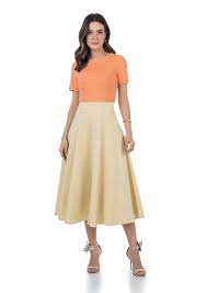 Saia Bege Em Sarja Godê Com Recortes E Bolso Funcional Via Tolentino