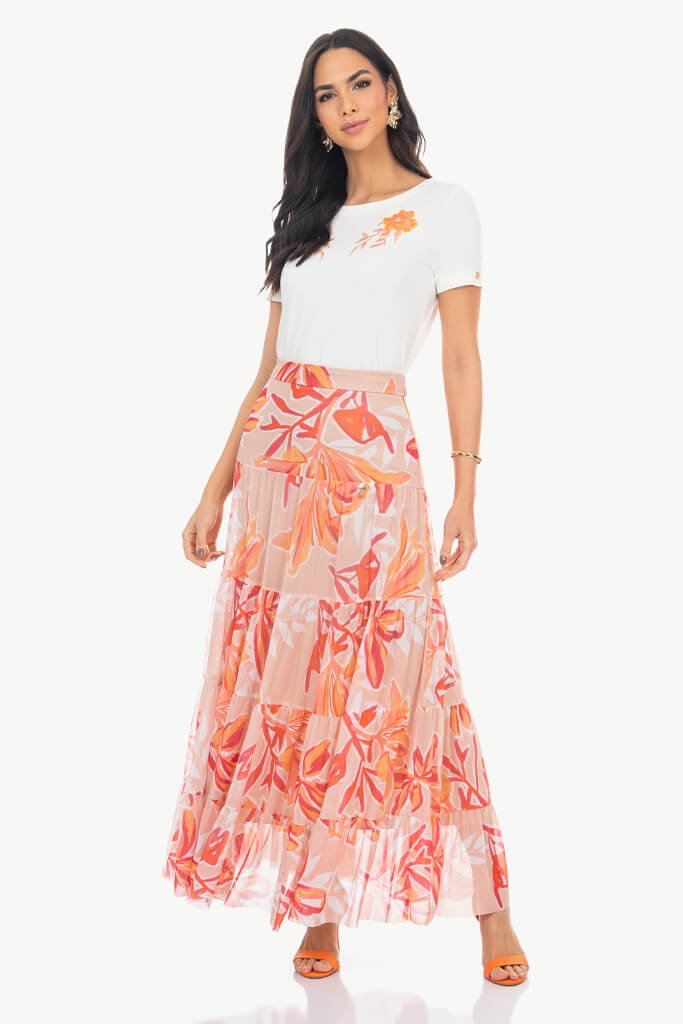 Saia De Tule Estampada Via Tolentino