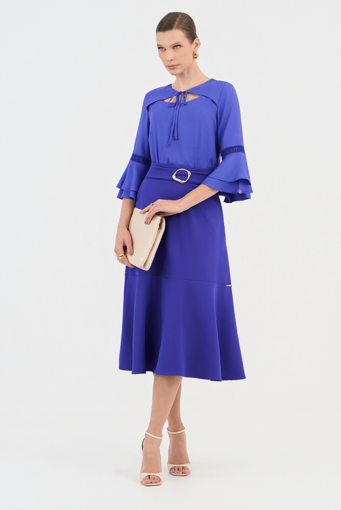Saia Evasê Com Fivela No Cós