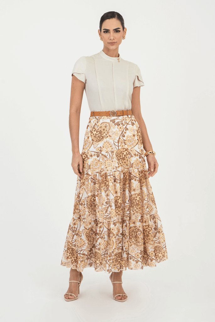Saia Longa Com Recortes Estampada Marrom-estampada-marrom