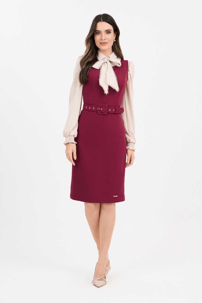 Vestido Marsala Justo Alfaiataria Com Cinto Encapado
