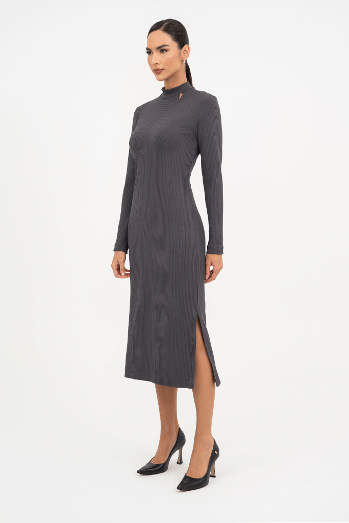 Vestido Midi Canelado Gola Alta Via Tolentino